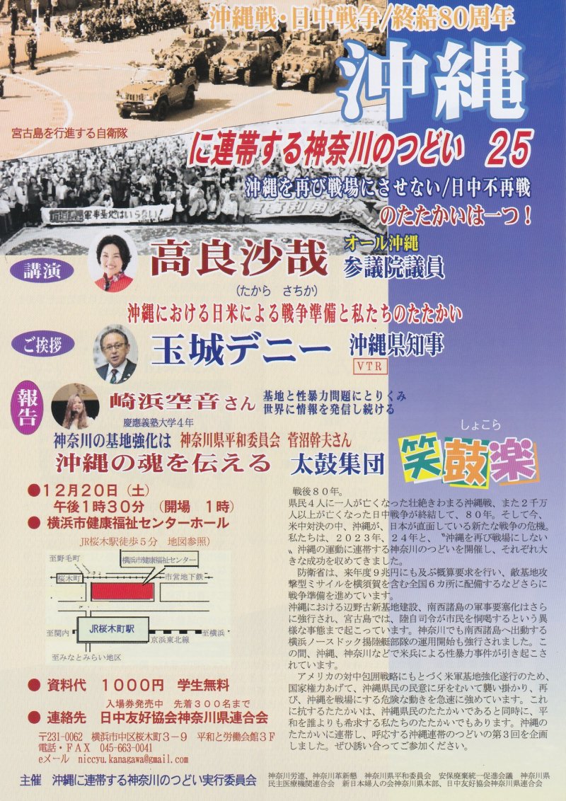 20250316 神奈川県連主催の日中友好音楽のつどい、開場13時、桜木町駅前横浜健康福祉センター
